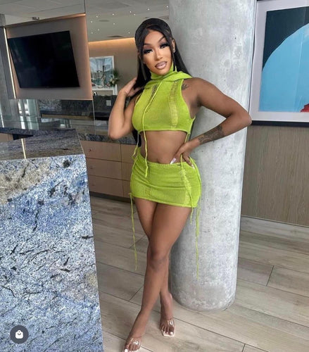 Knit skirt set with hood (green)
