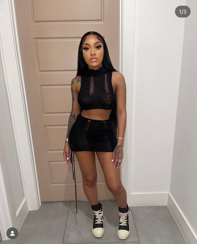 Knit skirt set with hood (black)