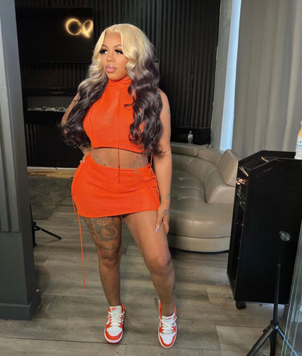 Knit skirt set with hood (orange)